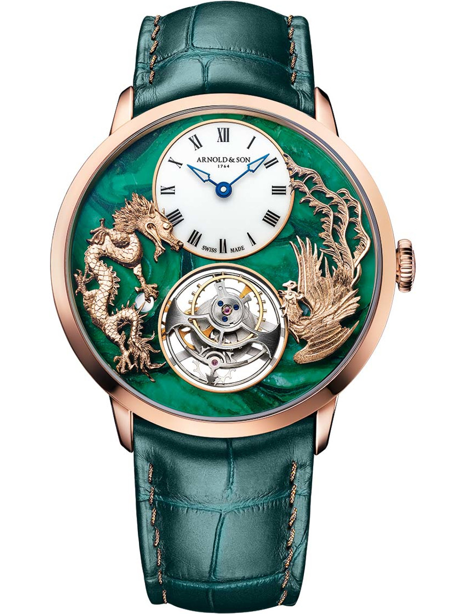 Metiers D'Arts Ultrathin Tourbillon Dragon & Phoenix in Rose Gold on Green Alligator Leather Strap with Verdite Stone Dial - L.E 8 pcs 1UTAR.Z05A.C160A