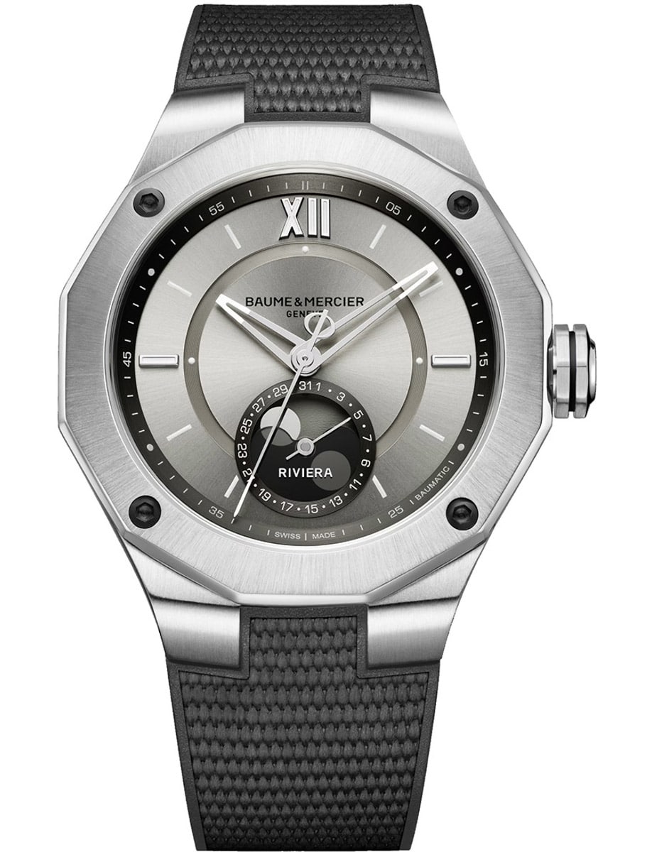 Riviera Moon Phase 43mm Automatic in Steel on Grey Rubber Strap with Sand Dial MOA10681