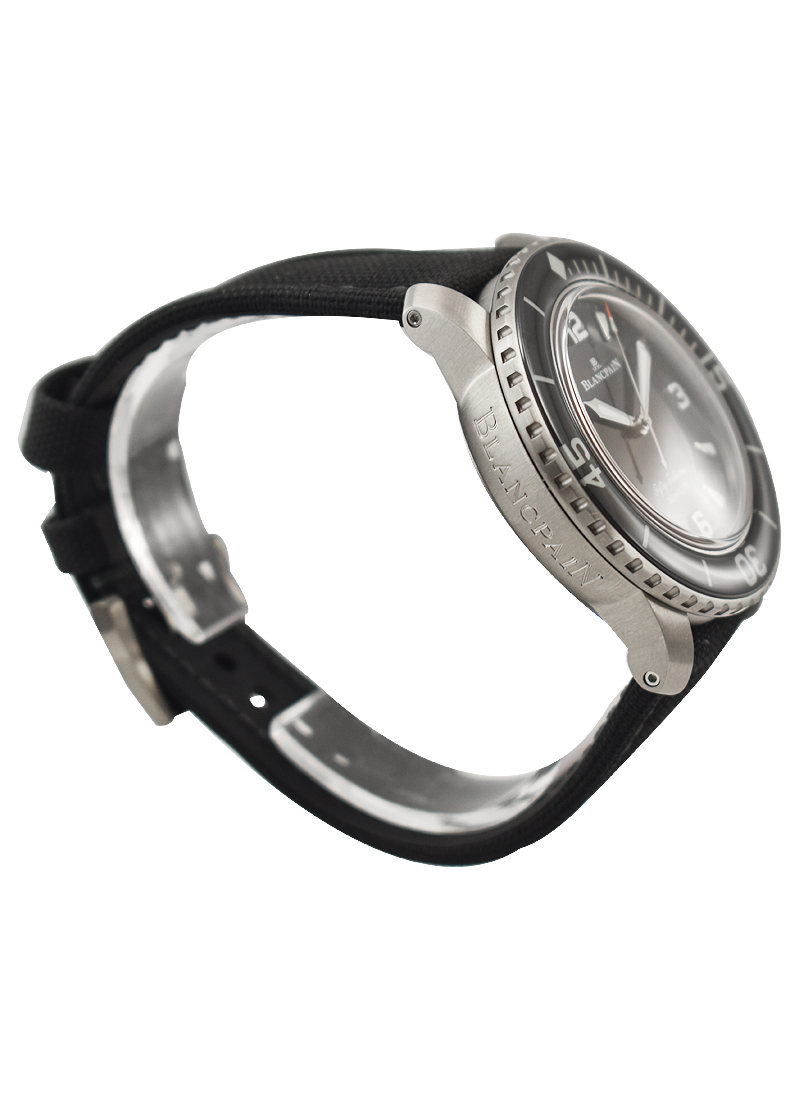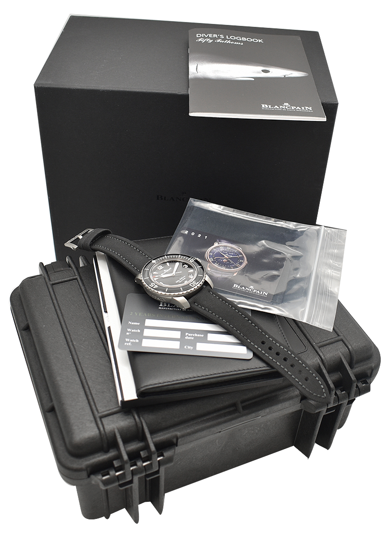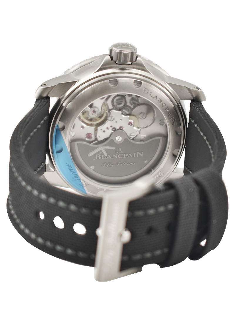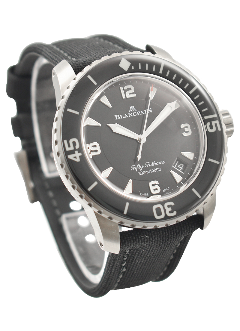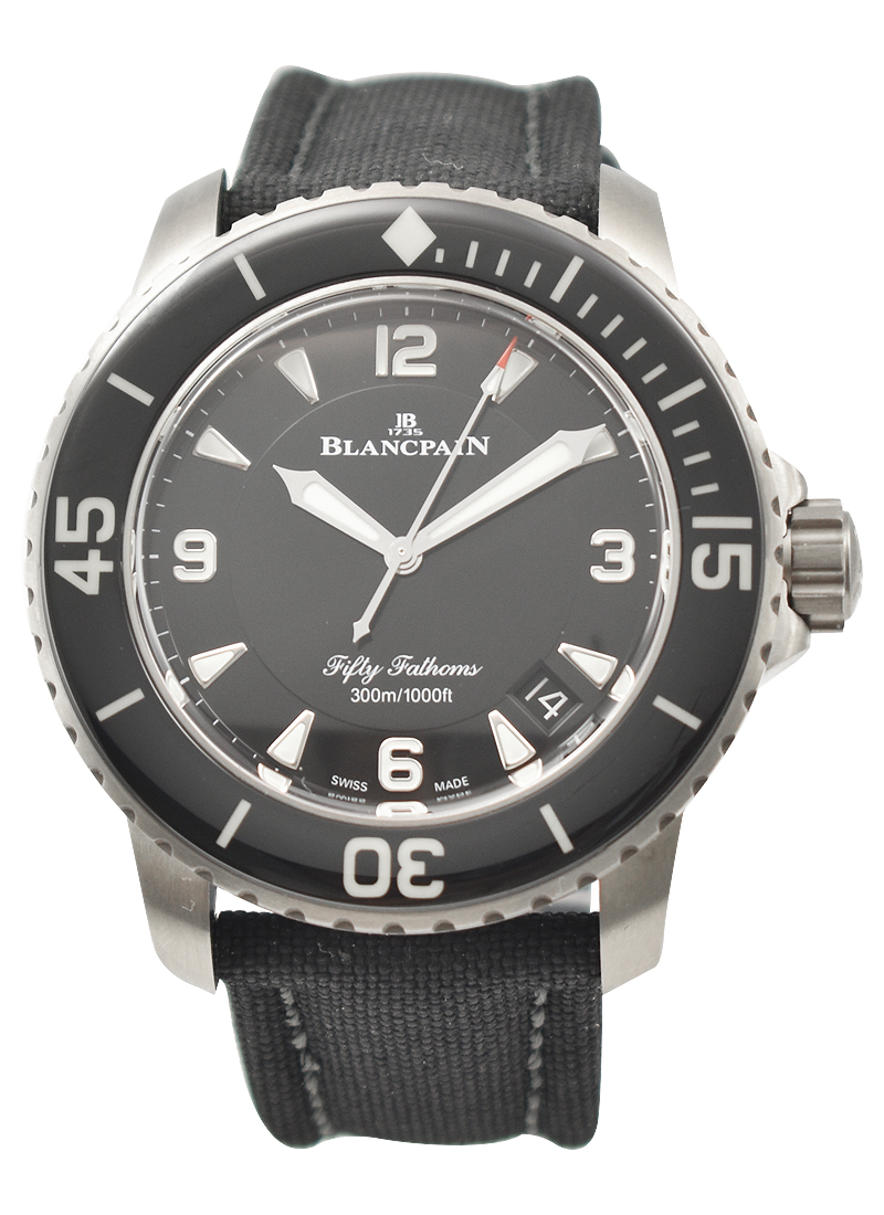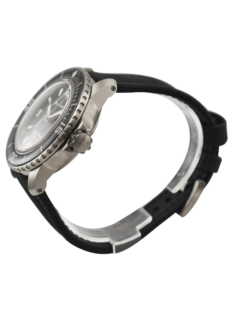Fifty Fathoms Automatic in Titanium with Black Ceramic Bezel on Black Sail Canvass Strap with Black Dial 5015 12B30 052A