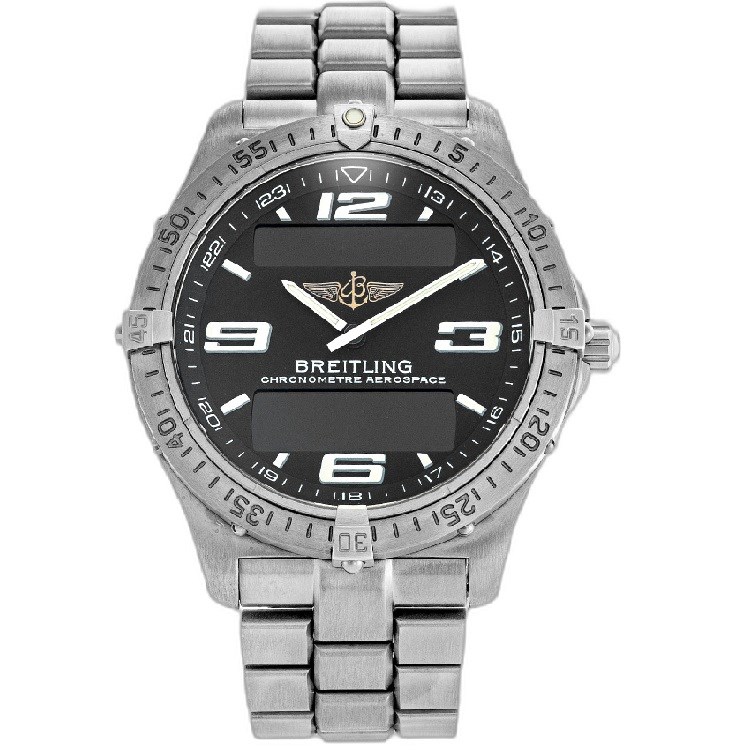 Aerospace Quartz 40mm in Titanium on Titanium Bracelet with Black Dial E75362