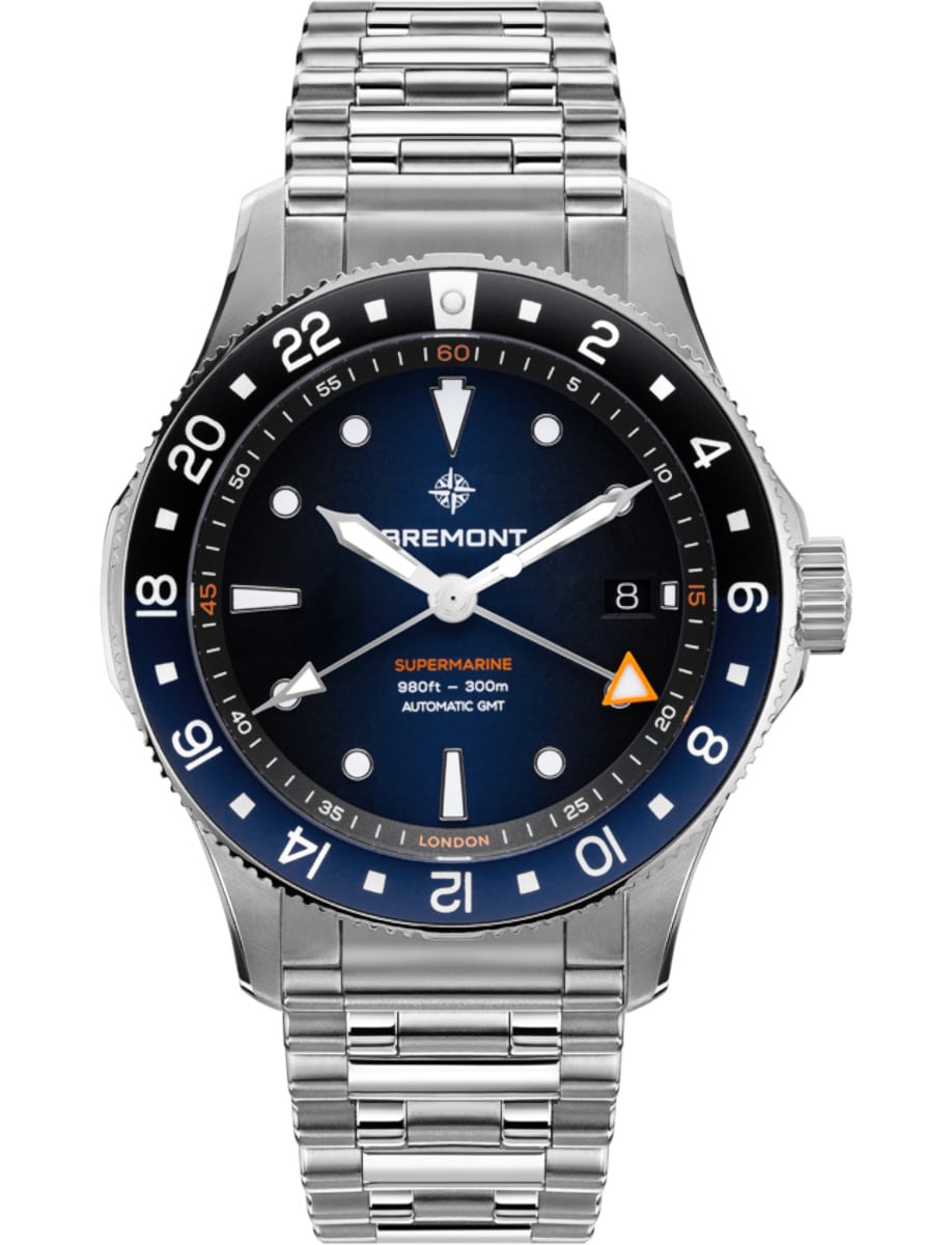 Supermarine 300M GMT ‘Glacier’ 40mm in Steel on Steel Bracelet with Blue Gradient Dial - Limited Edition 500 pieces SM40 GMT SS BLBK B