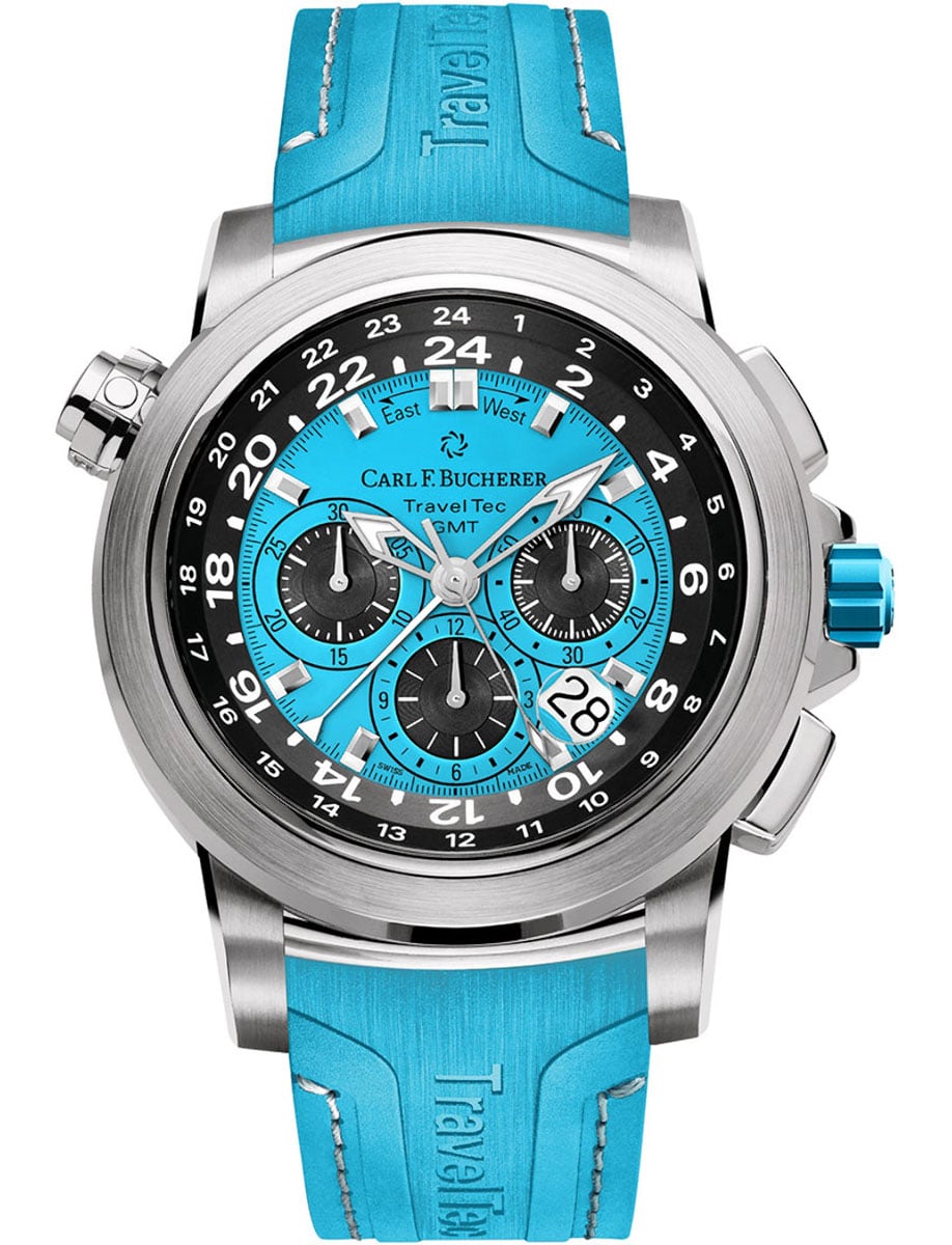 Patravi Traveltec Color Edition Four Seasons 46.6mm Automatic in Steel on Blue Rubber Strap with Blue Dial 00.10620.08.53.02
