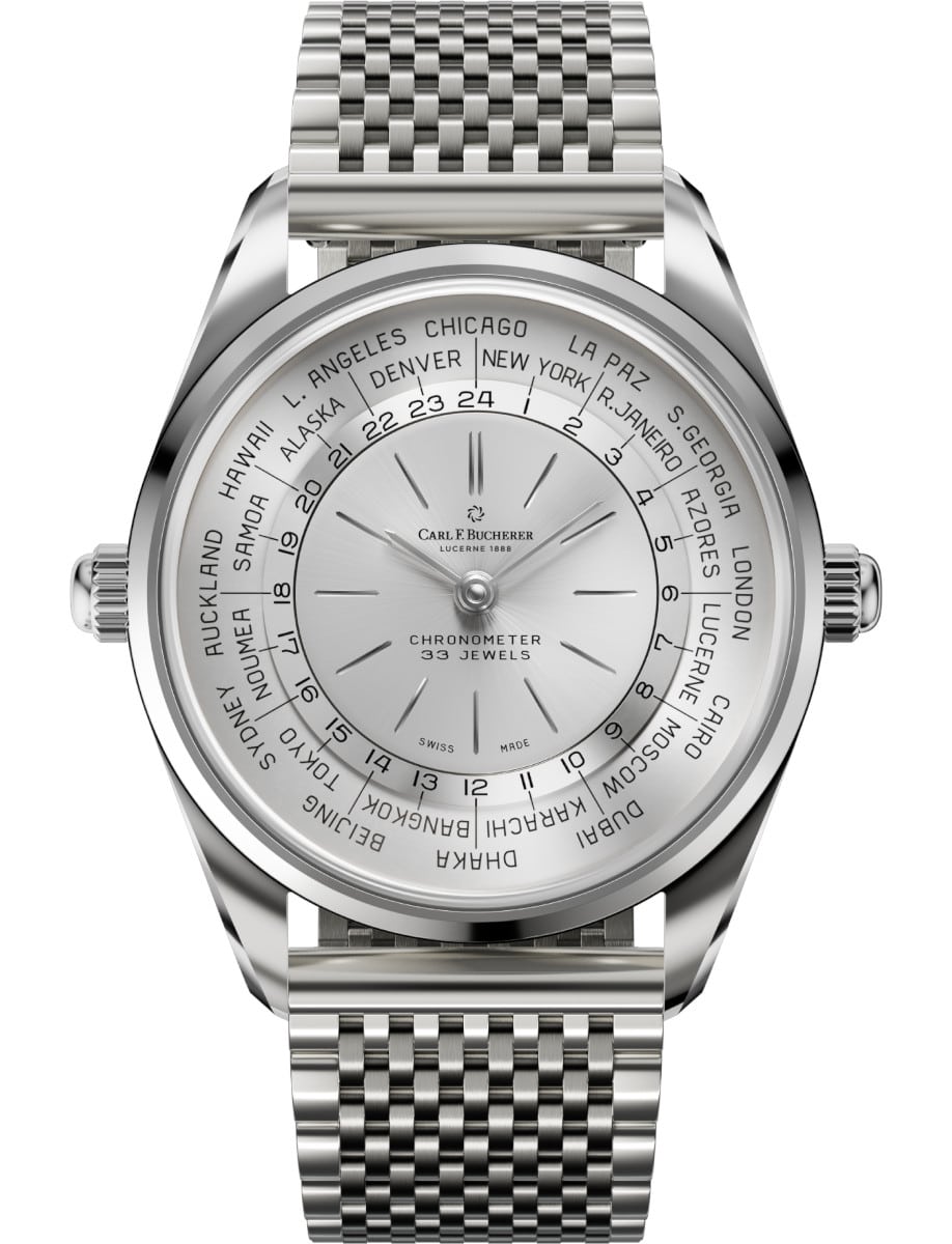 Heritage Worldtimer 39mm in Steel on Steel Bracelet with Silver Dial 00.10805.08.13.21