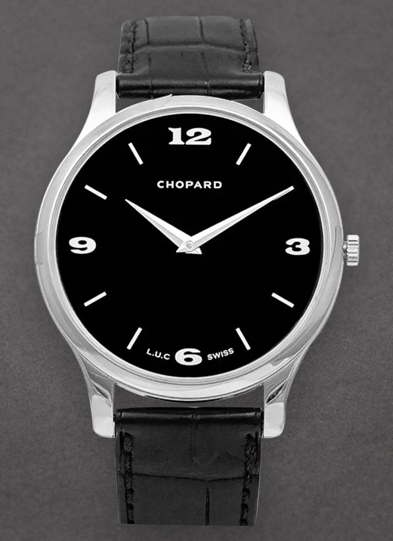 L.U.C. Classic in White Gold on Black Alligator Leather Strap with Black Dial 161902 1001