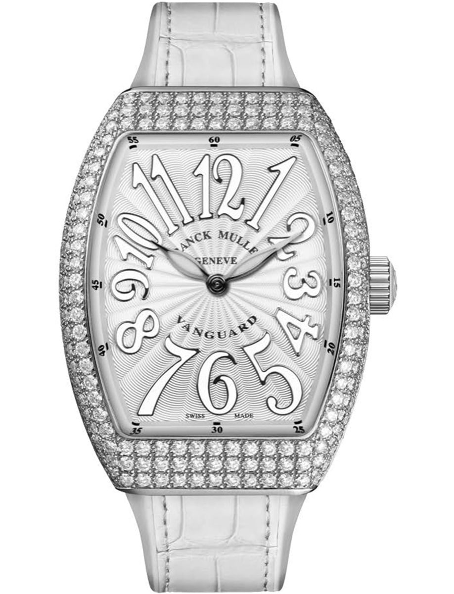 Vanguard Lady 32mm in Steel with Pave Diamond Case on White Alligator Leather Strap with Silver Dial V32QZDACE