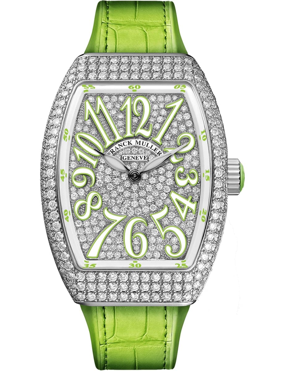 Lady Vanguard 35mm in Steel Gold with Diamond Case on Light Green Leather Strap with Pave Diamond Dial V35QZDCDACD LG