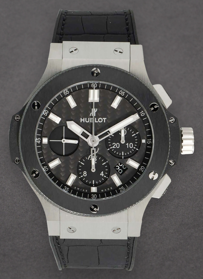 Big Bang Evolution 44mm in Steel on Black Rubber Strap with Black Carbon Fiber Dial 301.SM.1770.GR