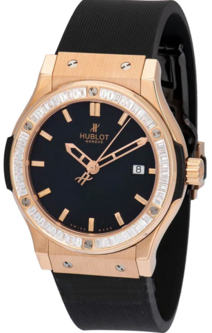 Classic Fusion 42mm Automatic in Rose Gold with Baguette Bezel on Black Rubber Strap with Black Dial 542.PX.1180.RX.1904
