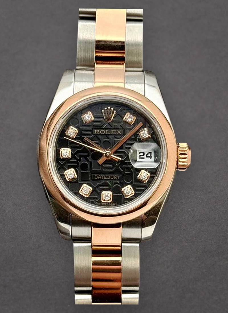 Lady Datejust in Steel with Rose Gold Smooth Bezel on Oyster Bracelet with Black Jubilee Diamond Dial 179161