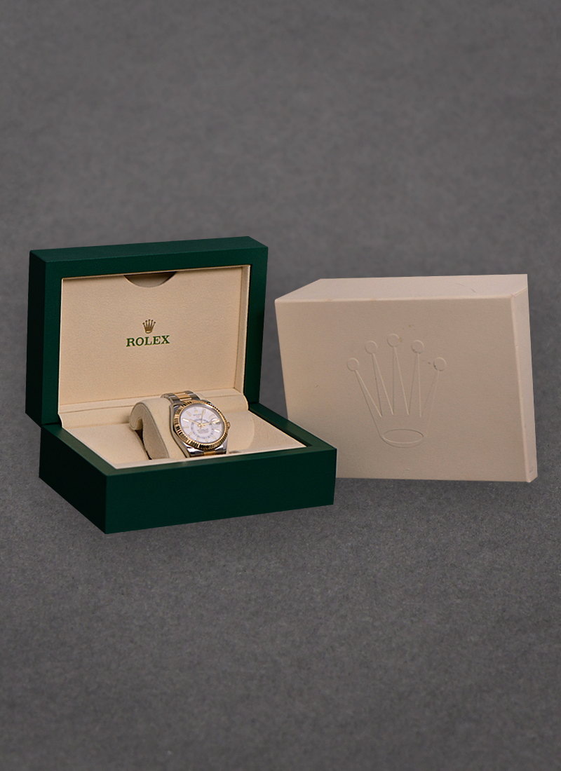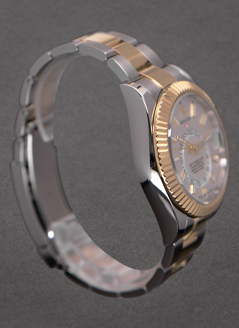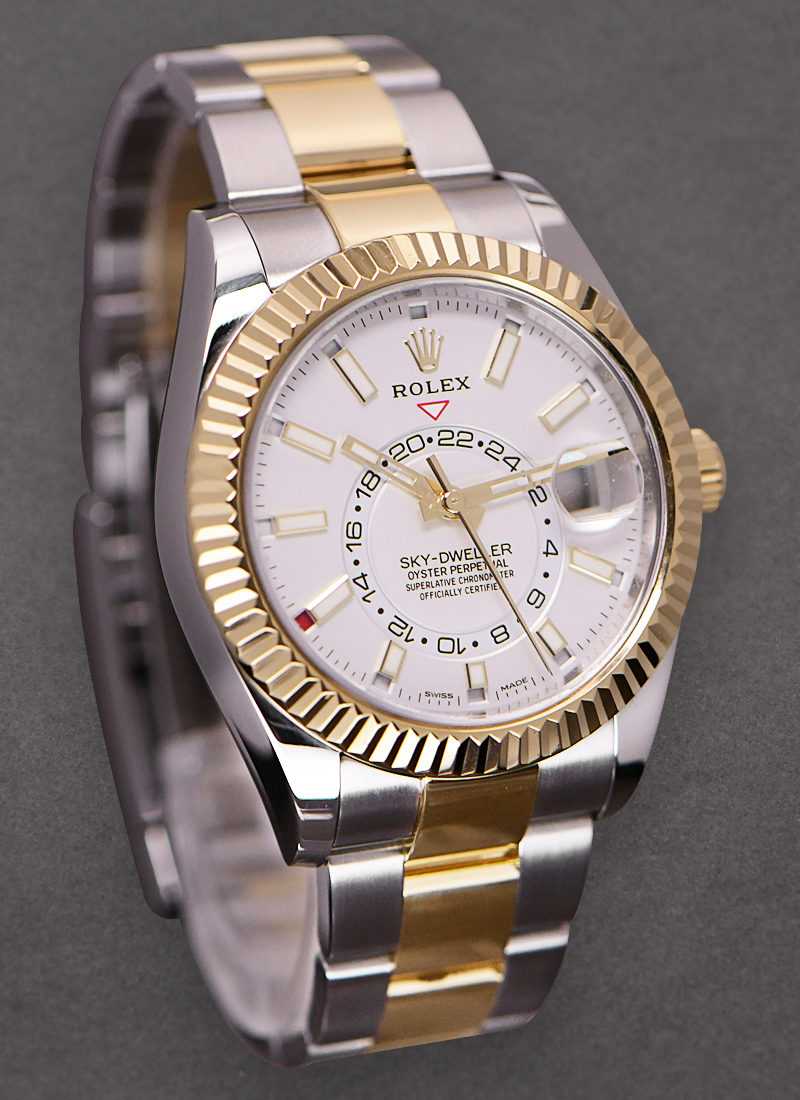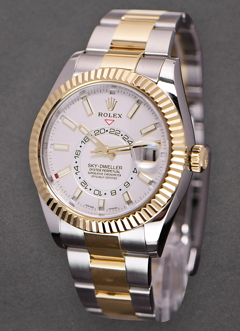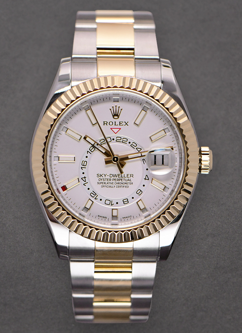 Sky Dweller 42mm in Steel with Yellow Gold Fluted Bezel on Oyster Bracelet with White Dial 326933