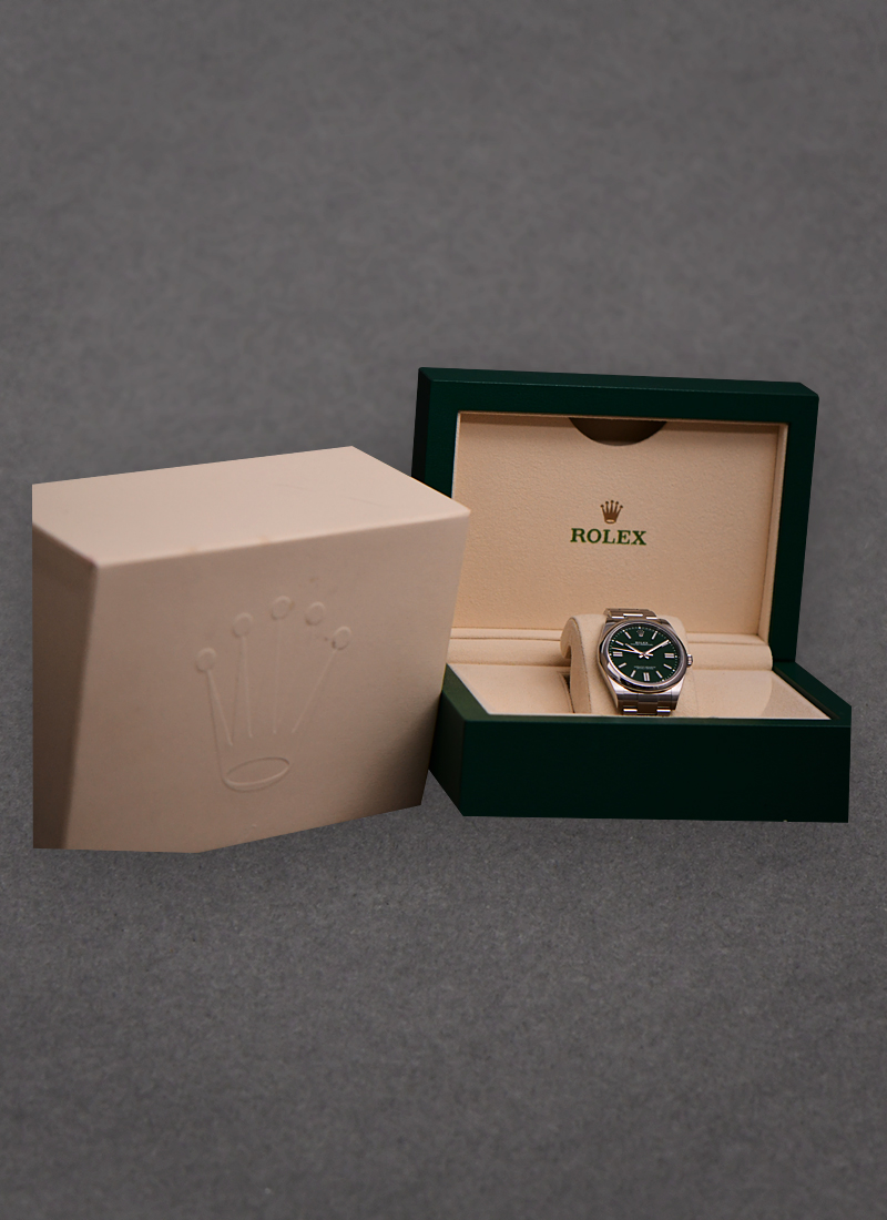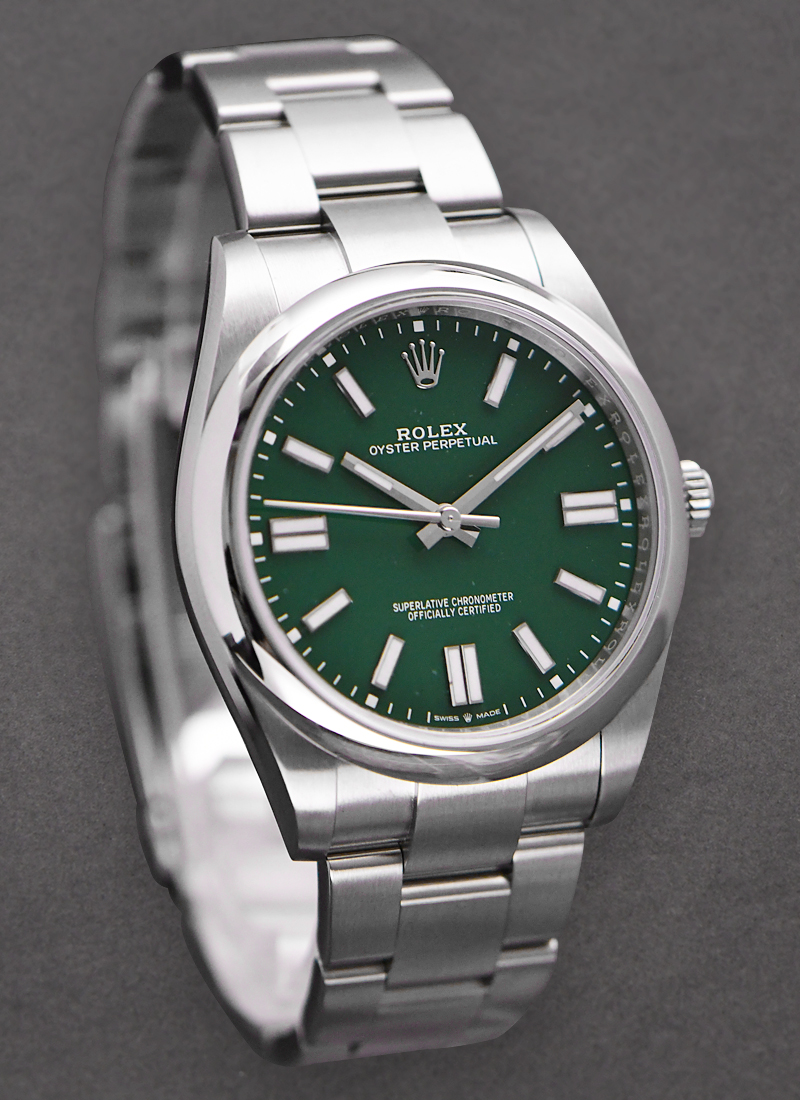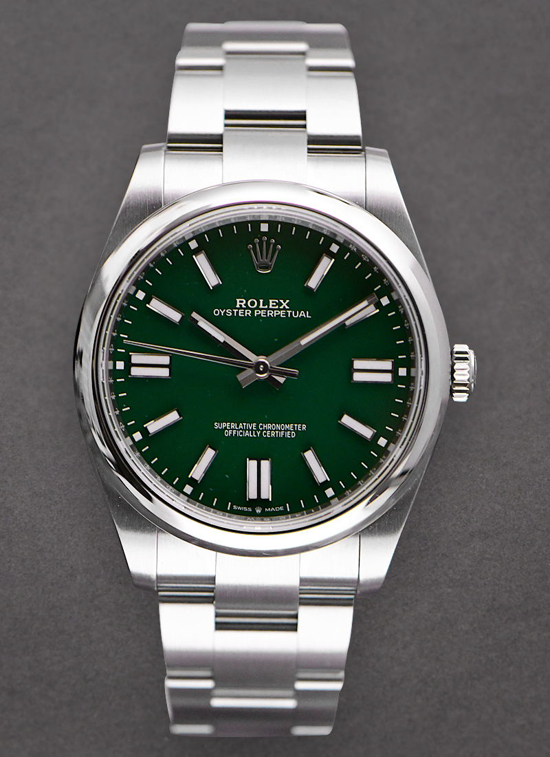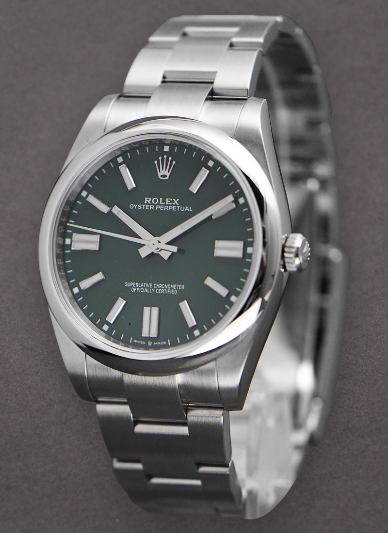 Oyster Perpetual 41mm in Steel with Smooth Bezel on Steel Oyster Bracelet with Green Dial 124300 0005